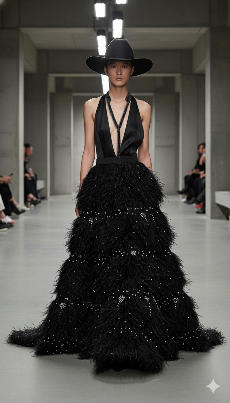 High-Impact Tie Necklace: Wear the full piece for a dramatic, high-fashion statement neck tie .